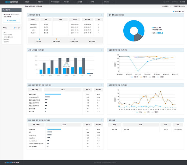 단순한 게시판 관리만으로도 메인의 실시간 현황과 갤러리등의 관리가 가능합니다.